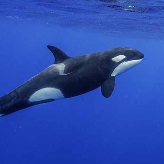 L’orque ou épaulard peut atteindre 9,5 mètres de longueur, mais, en général, il ne dépasse pas 5 ou 6 mètres. Ce cétacé, célèbre pour sa férocité, se reconnait à sa nageoire dorsale très haute (elle peut atteindre 2 mètres chez les sujets adultes).