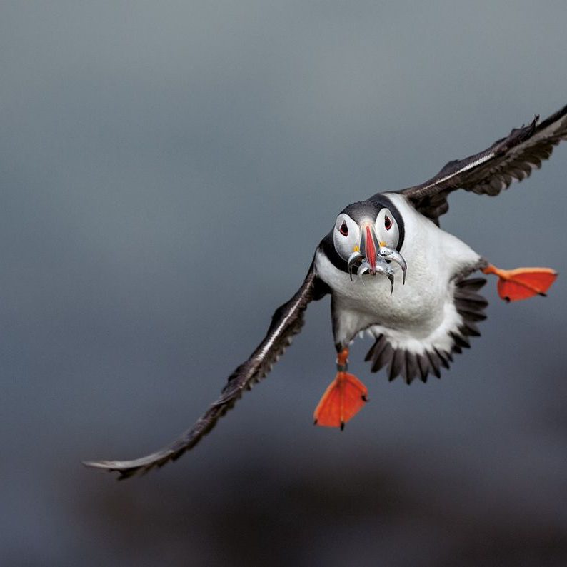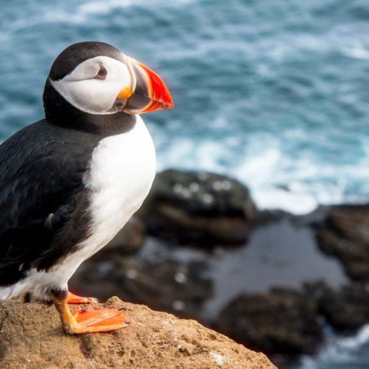 Un bec disproportionné et richement coloré, des pattes palmés orange vif et un maquillage de clown caractérise le macareux moine. Durant neuf mois de l’année, ce petit oiseau marin mène une vie solitaire. Par contraste, en période de reproduction, il se rassemble sur les côtes rocheuses et les ilots où ils forment d’immenses colonies animées et bruyantes.